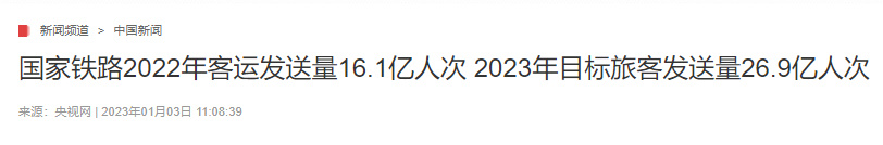 國(guó)家鐵路2022年客運(yùn)發(fā)送量
