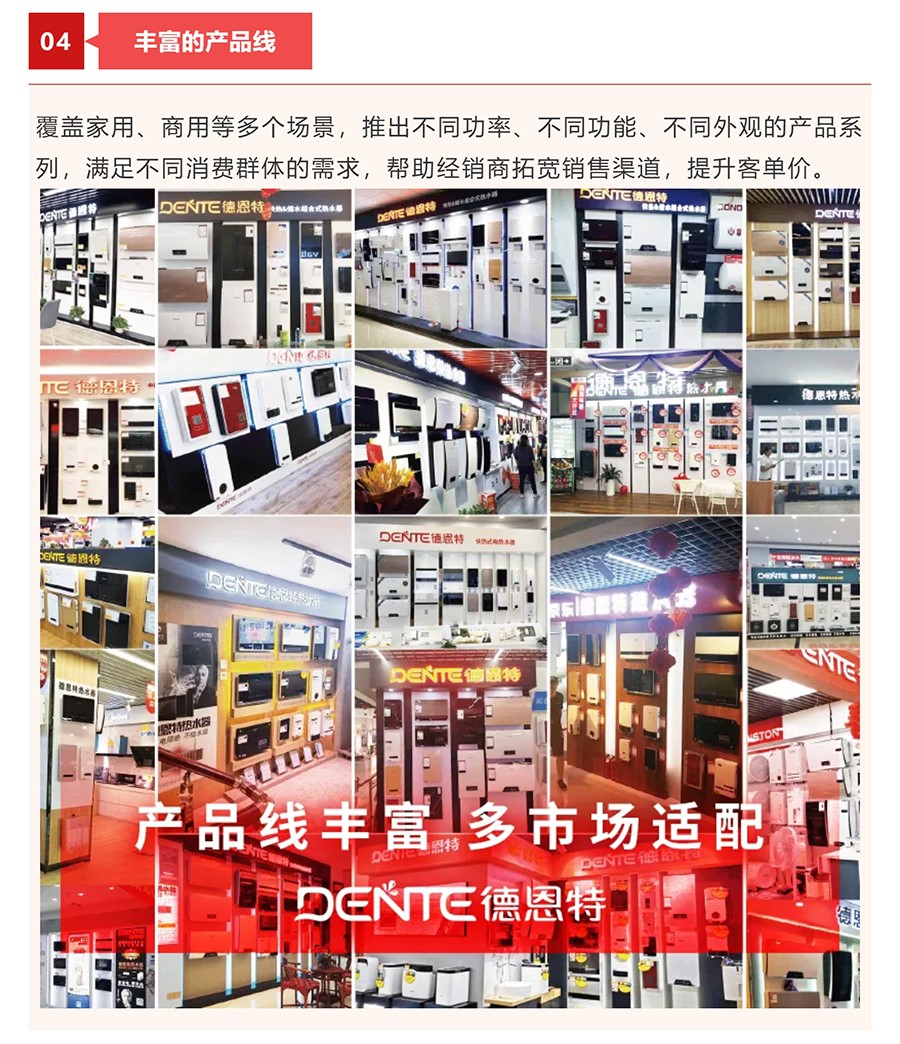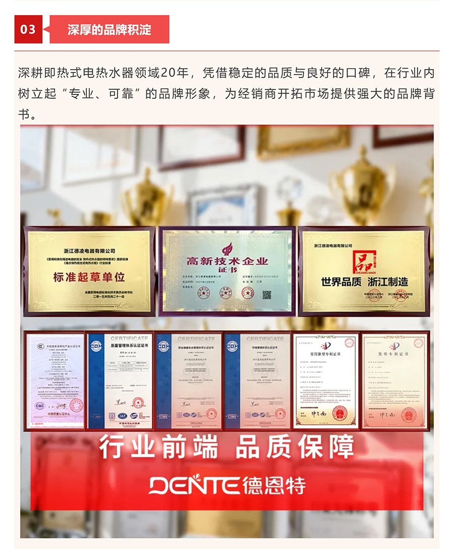 德恩特品牌旗下涵蓋即熱式電熱水器,速熱式電熱水器,快熱式電熱水器品牌和凈水機等